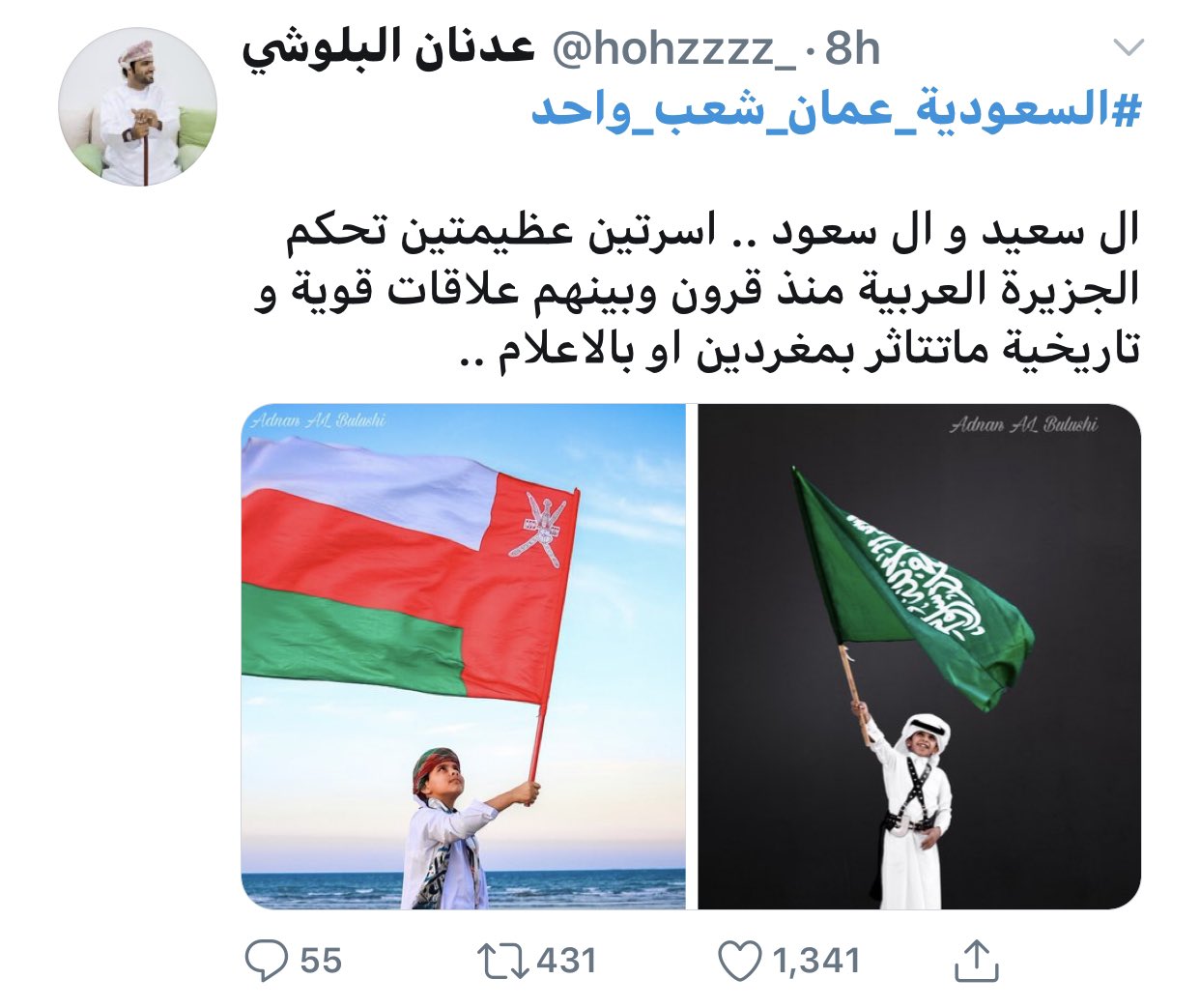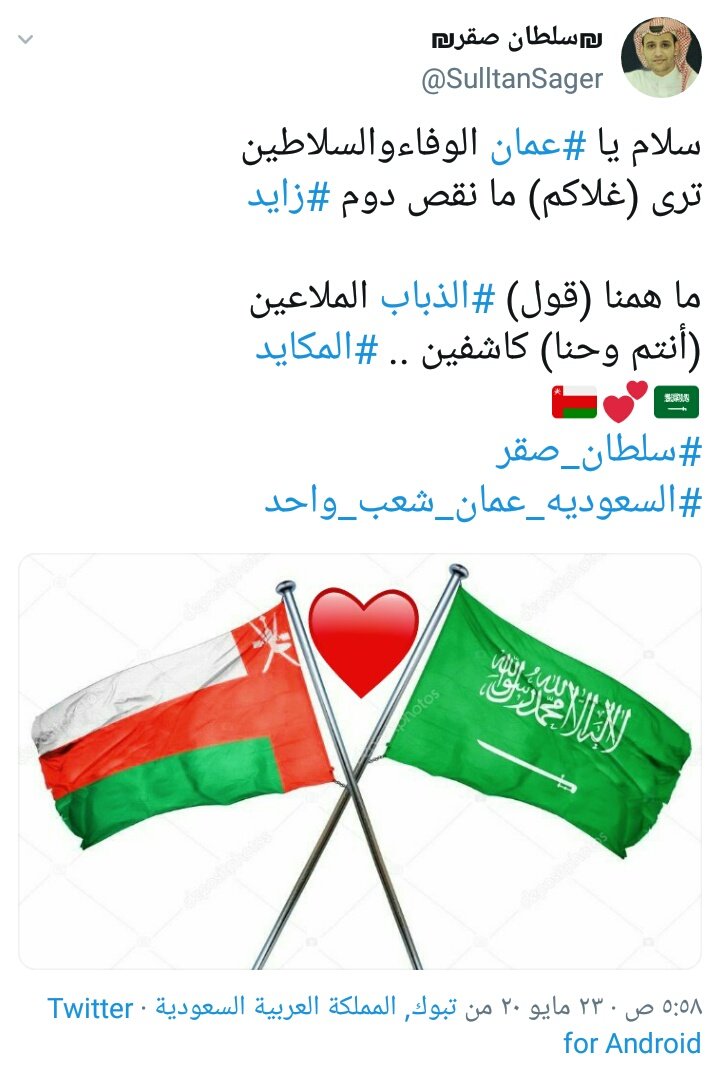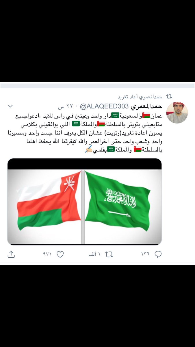 حمدالمعمري On Twitter عمان والسعودية دار واحد وعينين في راس للابد ادعواجميع متابعيني بتويتر بالسلطنة والمملكة اللي يوافقوني بكلامي يسون اعادة تغريد رتويت عشان الكل يعرف اننا جسد واحد ومصيرنا واحد وشعب واحد حتى اخرالعمر والله